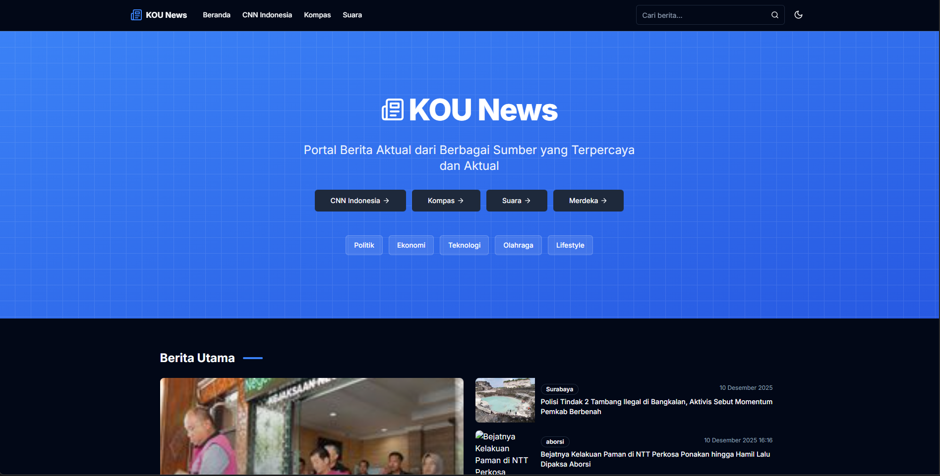Portal agregator berita dari berbagai sumber Indonesia dengan kategori, filter, dan arsitektur SSR yang cepat dan SEO-friendly.
